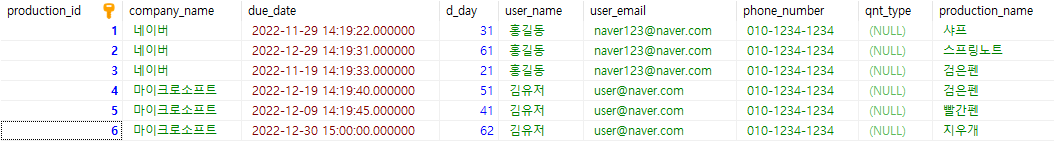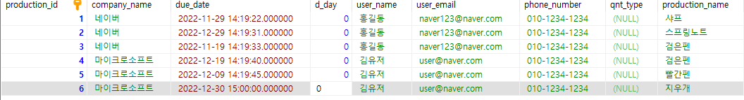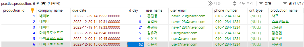 0으로 초기화해주었던 d_day 컬럼에 값들이 다시 세팅되었다!