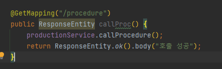 인텔리제이 하단 콘솔 창에 프로시저 호출한 쿼리문이 찍혔다